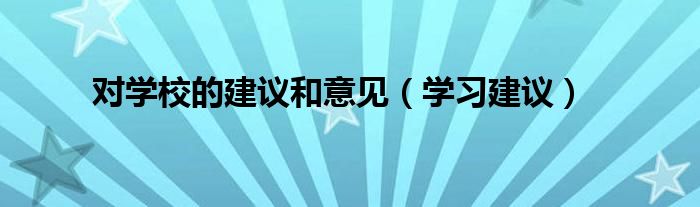 关于对学校的建议和意见,学习建议这个很多人还不知道,今天菲菲来为大家解答以上的问题,现在让我们一起来看看吧!
