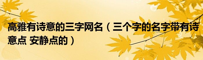 关于高雅有诗意的三字网名,三个字的名字带有诗意点 安静点的这个很多人还不知道,今天菲菲来为大家解答以上的问题,现在让我们一起来看看吧!