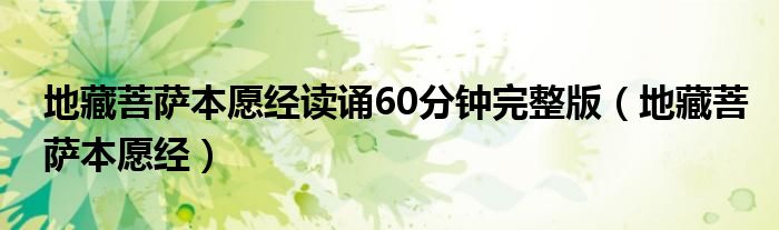 关于地藏菩萨本愿经读诵60分钟完整版,地藏菩萨本愿经这个很多人还不知道,今天菲菲来为大家解答以上的问题,现在让我们一起来看看吧!