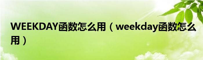 WEEKDAY函数怎么用(weekday函数怎么用)