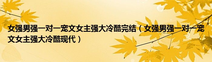 关于女强男强一对一宠文女主强大冷酷完结,女强男强一对一宠文女主强大冷酷现代这个很多人还不知道,今天菲菲来为大家解答以上的问题,现在让我们一起来看看吧!