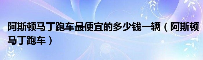 阿斯顿马丁跑车最便宜的多少钱一辆(阿斯顿马丁跑车)