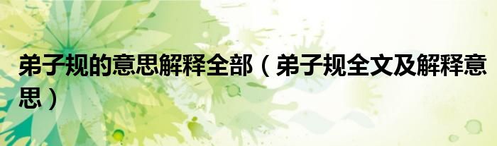 关于弟子规的意思解释全部,弟子规全文及解释意思这个很多人还不知道,今天菲菲来为大家解答以上的问题,现在让我们一起来看看吧!
