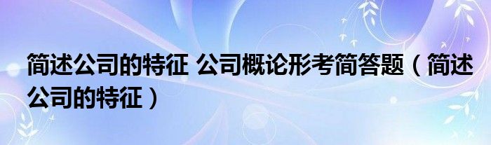 关于简述公司的特征 公司概论形考简答题,简述公司的特征这个很多人还不知道,今天菲菲来为大家解答以上的问题,现在让我们一起来看看吧!
