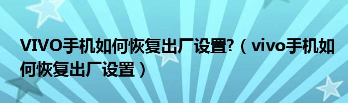 VIVO手机如何恢复出厂设置?(vivo手机如何恢复出厂设置)