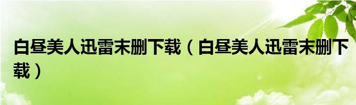 关于白昼美人迅雷末删下载,白昼美人迅雷末删下载这个很多人还不知道,今天菲菲来为大家解答以上的问题,现在让我们一起来看看吧!
