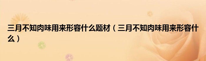 关于三月不知肉味用来形容什么题材,三月不知肉味用来形容什么这个很多人还不知道,今天菲菲来为大家解答以上的问题,现在让我们一起来看看吧!