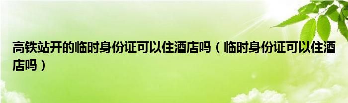 大家好,小晋来为大家解答以下问题,关于高铁站开的临时身份证可以住酒店吗,临时身份证可以住酒店吗很多人还不知道,今天让我们一起来看看吧!