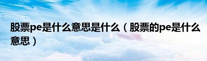 关于股票pe是什么意思是什么,股票的pe是什么意思这个很多人还不知道,今天菲菲来为大家解答以上的问题,现在让我们一起来看看吧!