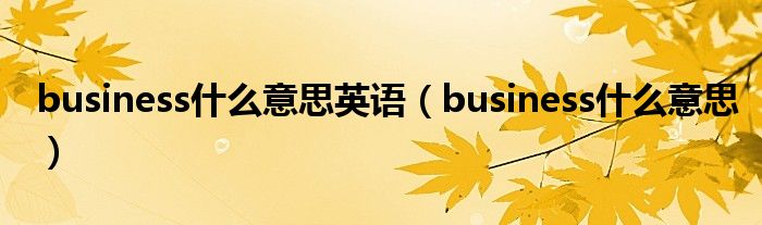 business什么意思英语(business什么意思)