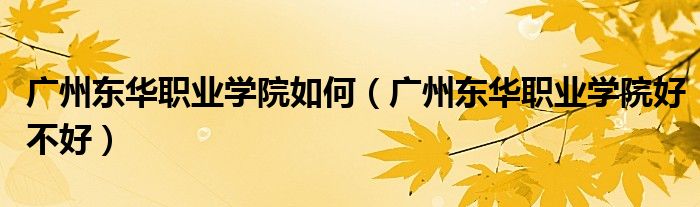 广州东华职业学院如何(广州东华职业学院好不好)