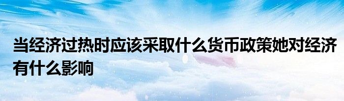 关于当经济过热时应该采取什么货币政策她对经济有什么影响这个很多人还不知道,今天菲菲来为大家解答以上的问题,现在让我们一起来看看吧!