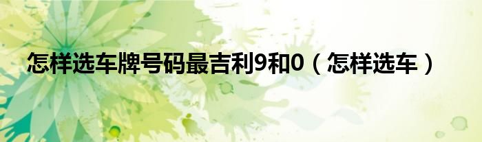 怎样选车牌号码最吉利9和0(怎样选车)