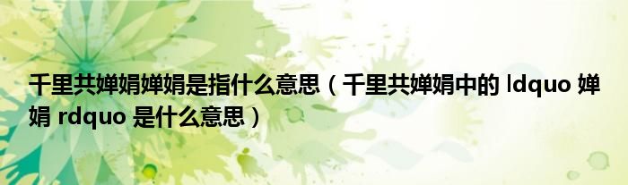 关于千里共婵娟婵娟是指什么意思,千里共婵娟中的 ldquo 婵娟 rdquo 是什么意思这个很多人还不知道,今天菲菲来为大家解答以上的问题,现在让我们一起来看看吧!