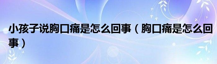 关于小孩子说胸口痛是怎么回事,胸口痛是怎么回事这个很多人还不知道,今天菲菲来为大家解答以上的问题,现在让我们一起来看看吧!