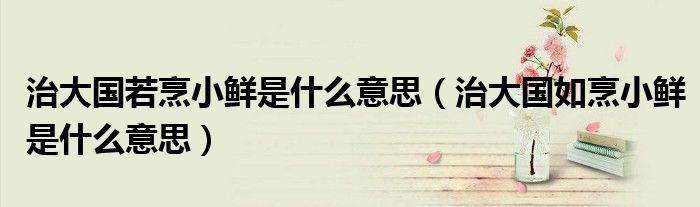 关于治大国若烹小鲜是什么意思,治大国如烹小鲜是什么意思这个很多人还不知道,今天菲菲来为大家解答以上的问题,现在让我们一起来看看吧!