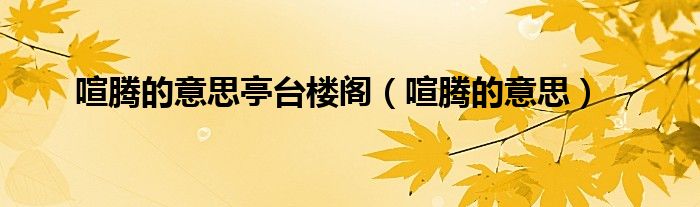 关于喧腾的意思亭台楼阁,喧腾的意思这个很多人还不知道,今天菲菲来为大家解答以上的问题,现在让我们一起来看看吧!