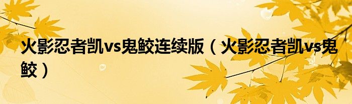 火影忍者凯vs鬼鲛连续版(火影忍者凯vs鬼鲛)