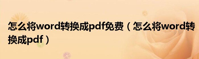 怎么将word转换成pdf免费(怎么将word转换成pdf)