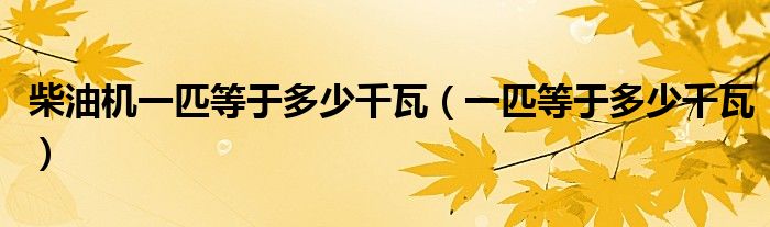柴油机一匹等于多少千瓦(一匹等于多少千瓦)